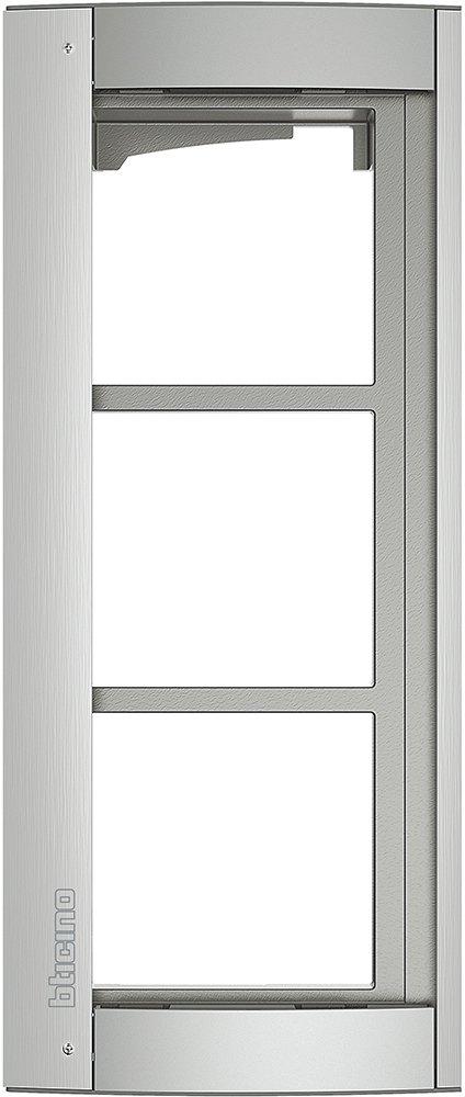 3-moduliger Abdeckrahmen für die Türstation SFERA Allmetal. Abdeckrahmen inklusive Modulträger, 3-modulig Abdeckrahmen für die Unterputz eingebaute 3-modulige Audio/Video Sprechanlage. Farbe: Allmetal "aluminium" ähnlich wie die RAL-Farbe 9018 Masse (BxHxT): 138 x 327 x 15 mm